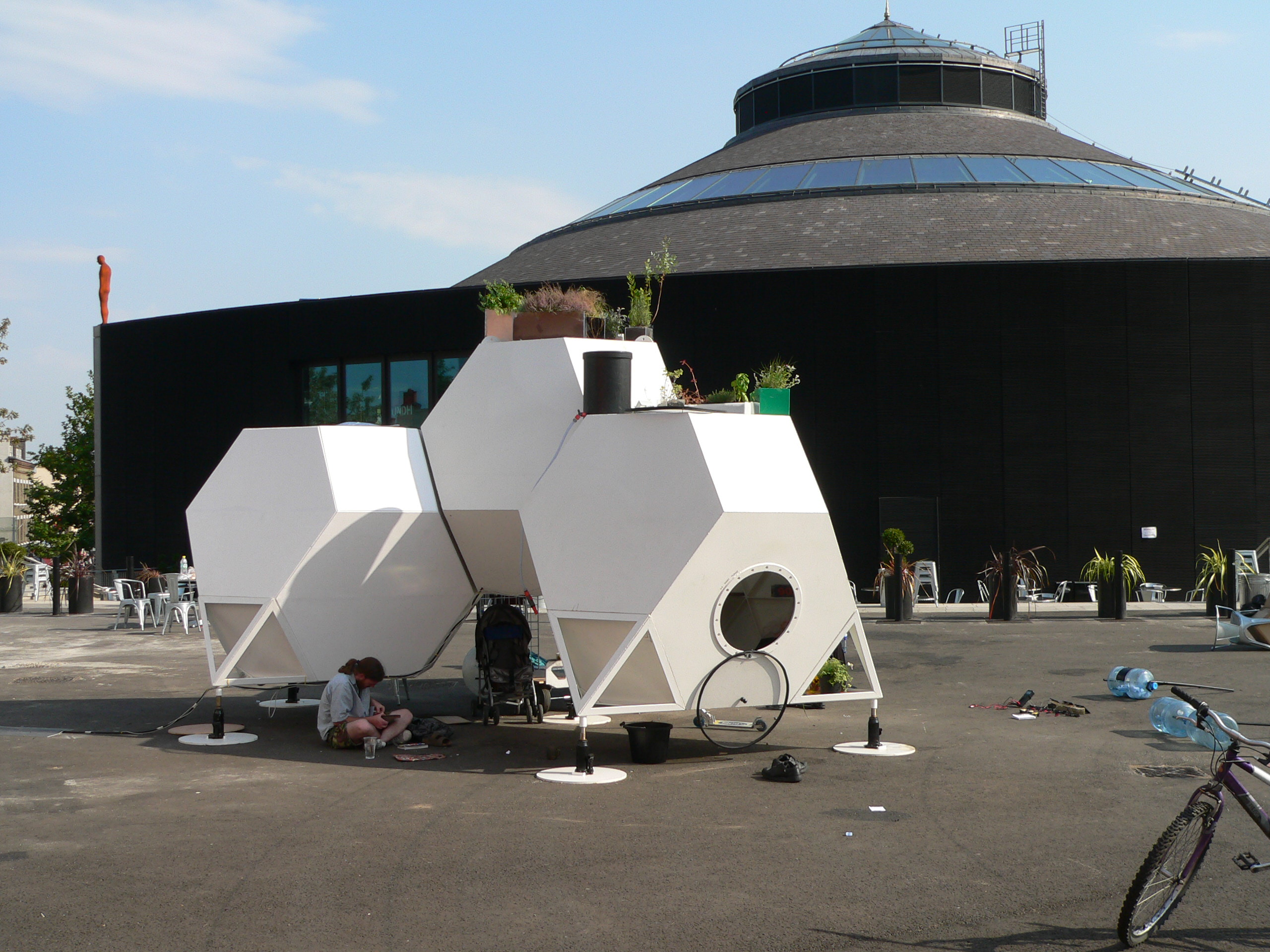 Camden Roundhouse, 2006. A project developed in collaboration with Danish architects N55, this space station was conceived as an exploratory platform to investigate our own planet and our impact on it. Using forms developed by Peter Jon Pearce (Structure in nature is a strategy for design) and with a critical view of the attempts to escape Earth and reach Mars, putting space over and above planetary health, we experimented with micro-economies, ecologies and low impact living. The space ‘on earth’ station included units for humans, birds, bees and plants, and hosted projects by artists across UK / Europe selected from an open call. It was produced in London and Copenhagen, and was open to the public for 6 days in September 2006. Supported by Arts Catalyst, London.